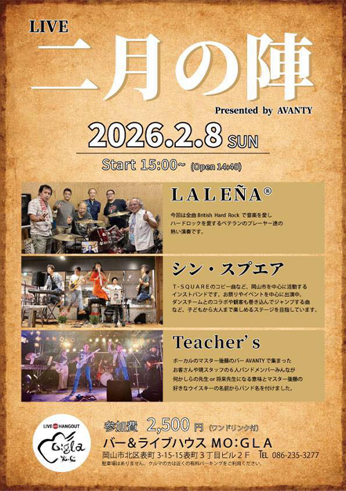 2026/2/8(日) AVANTYプレゼンツライブ「二月の陣」に出演します!